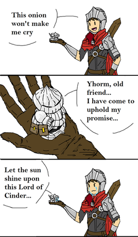 I'm only imagining how detailed the lore is. He traveled all the way through Lordran to get to Lothric and get to Lothric castle, just to go through the dungeon to meet his old friend, to see his friend turned and has to kill him.