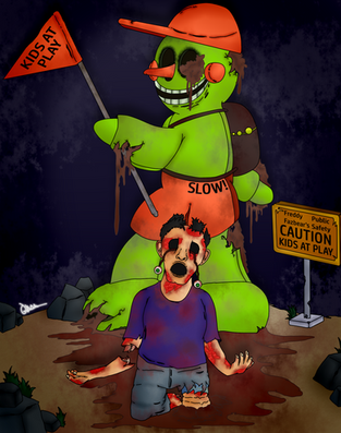 Help is on the way!Continuando con los fanarts nuevos de Tales From The Pizzaplex que girará en torno al gran centro comercial Pizzaplex junto a nuevas historias que dejarán con los pelos de punta a muchos de los fans de FNaF. Happs, una historia que tratará sobre Steve, quien sueña con una carrera de programación de videojuegos e iniciar una familia lo llevarán a un trabajo que es demasiado bueno para ser real. El robot Happs parece ser una máquina gigante de servicio que por un lado se ve bien, pero por el otro posee una apariencia retorcida y destruida que lo hace ver de todo, menos amigable.