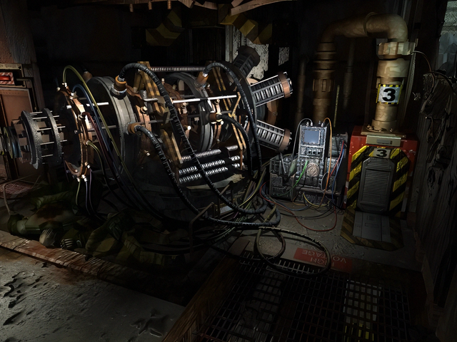 At the moment I am working on an indoor environment, called Facility, where a strong industrial athmosphere rules. But in the lower level we find pieces of ancient architecture, not known, freshly discovered.All is based on a short story I wrote a while ago, which handles about a group of people who are raised within the facility, and grow up there, only knowing this environment. Every year there comes a new part free to occupy, so within the years they get more space to live. But on one day, the great steel door that always was closed, opens, showing the inhabitants a landscape, a living, breathing world, with trees, water, nature...and they don't kno what to do with that....
