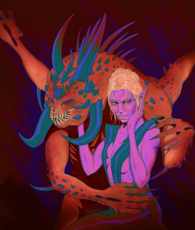#dragonage #halloveen #dorianpavus #theironbull #art #seradragonage #doribull #ironbulldragonage #dorianxbull #digitalart #digitalfanart #fanart #illustration #dragonageinquisition #inquisitorlavellan #ukrainianartist #ukraineart #inktober2023