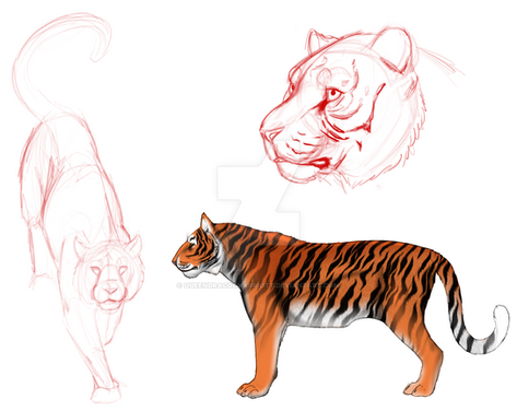Quick tiger sketch trying to figure out my tablet setup! Digital sketching has always felt extremely awkward for me and I just assumed that digital media is simply not meant to feel organic. Now after sticking a sheet of clear contact (the stuff you cover school books with) over the tablet screen I am suddenly so much happier, there's finally some tooth to draw on instead of smooth plastic. It's not an ideal material (one side is adhesive, and it creates some colour distortion and glare) so I've ordered a proper screen protecter to eventually use intsead. Something to consider if you're struggling with the transition from traditional to digital media.Reference: fav.me/d4pn7k0 by Skylanth