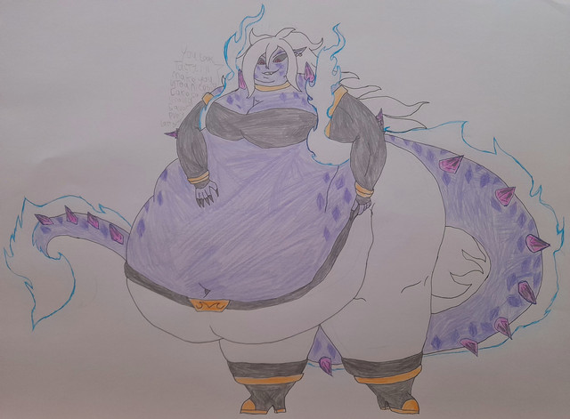 some mod for her body that allows to her gain weight,so she's after Gregory so she can put him in her stomach for safe keeping.