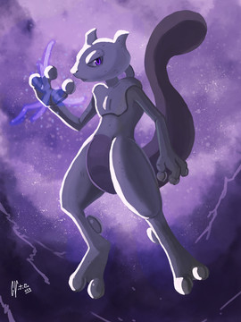 Acrylic on canvas (30x24cm)It's while playing Pokemon Brilliant Diamond that I decided to paint Mewtwo casting Psystrike because the effects are just stunning!