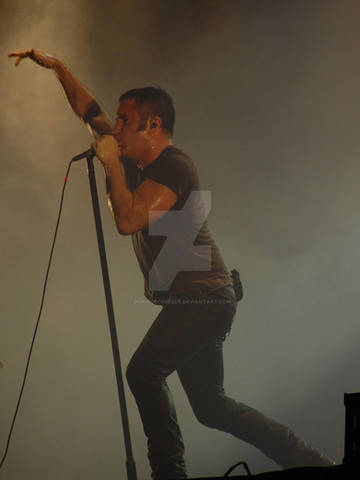 Perfect angle and a wonderful shot! Reznor always has fantastic lighting and atmosphere at his shows and you've used that nicely. Great job.