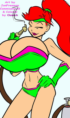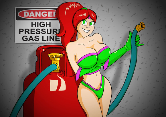 In a quest to find more wardrobe items that will stand up to her cartoon-physics stretchy body, Viva has had to test a lot of different materials and sewing techniques. Here we see her testing the durability of a cute little sundress by -- of course -- inflating her breasts to delightfully massive size. This is definitely one of the more promising dresses, since it's allowing her chest to swell magnificently while still keeping its shape elsewhere. Many others either failed the BE test before her cup size went beyond the end of the alphabet, or caused the hem to rise up so much her lovely butt was on full display. Fun, but not good enough for daily use. The search goes on!did this pic for me with very little explanation, and it was on sale too! Check out her gallery for all sorts of cute and colorful pics. And don't forget to leave a comment here. Just a few words of criticism or encouragement really make a difference. Send me a Note, too -- I like to chat.