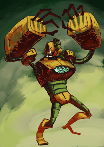 This is a character of mine. He is part of a group who uses a hoard of weapons they've found to fight off the giant robots and monsters that terrorise the slums they call home. In this guys case, a pair of giant gauntletsa bit thin at the moment I know, ill go into more detail later, Im still working out their characters