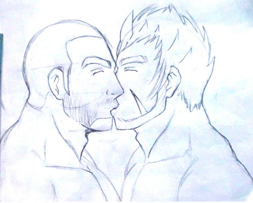 RP-based drawing. Solid Snake and Big Boss sharing a rare, tender moment.Drawn and inked with Sharpies.