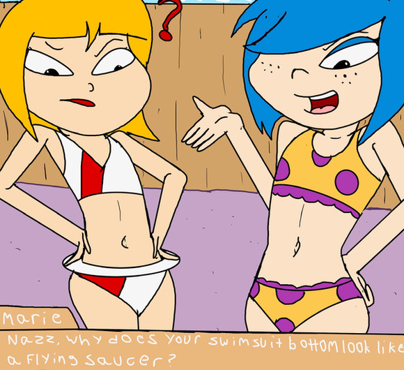 Penny:seriously how could someone my age get away with wearing this bikini back in my cartoon? This is more meant for teens and adults.I know it was the 1980s but come on; they let Penny Gadget wear that type of swimsuit? Anyone else question this?