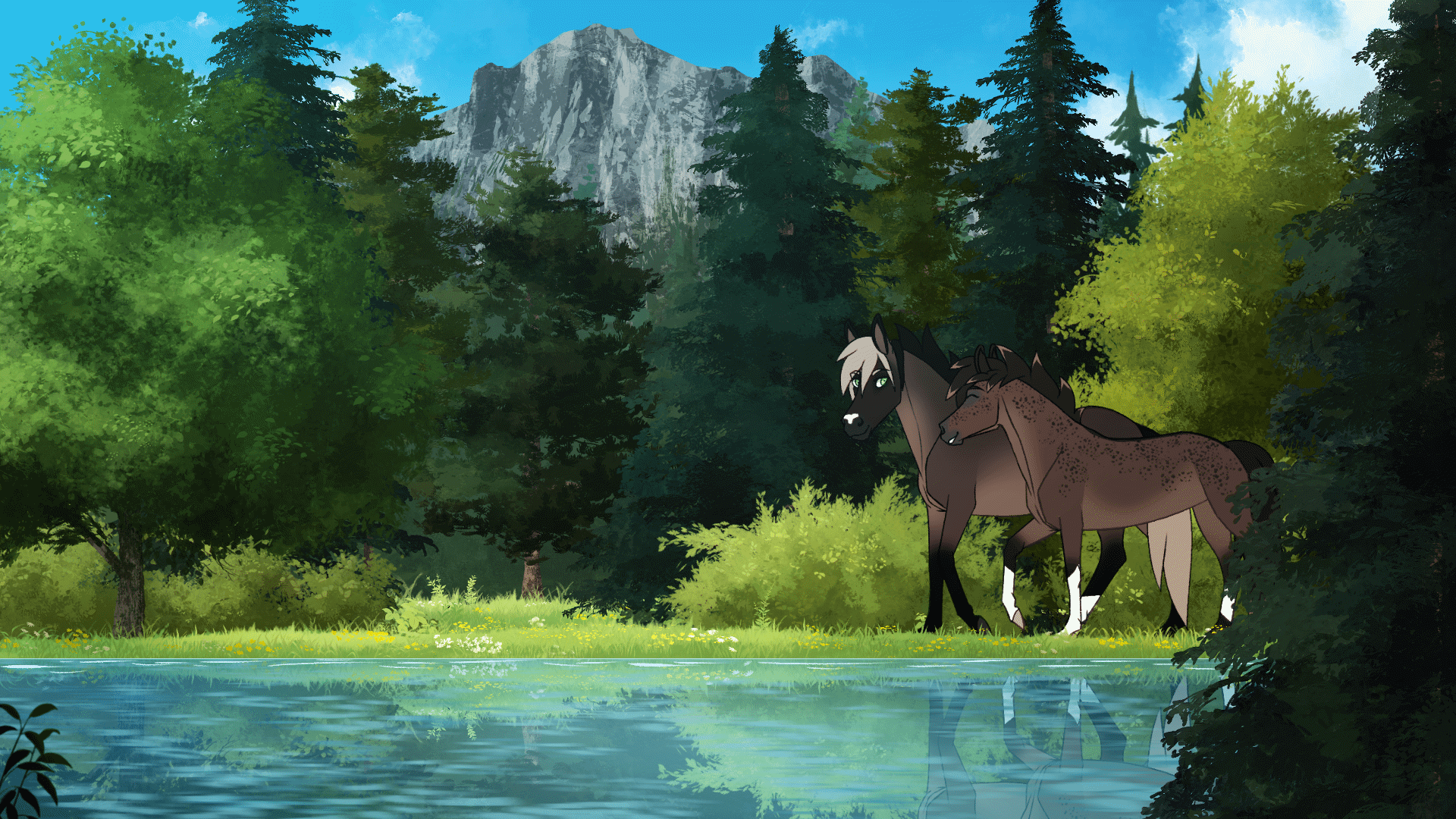 "It's not like I could drown in here if I did break through the ice", Woo remarked as he waited by the edge. He changed on his hooves, obviously impatient. "But you can get your legs hurt by the ice", I replied as I came up next to him. I could see his body flinch as I stood closer to him than I had done these last weeks. How had I missed all of this? Woo snorted but waited anyway. "I'll go first, impatient one", I grinned and bumped his shoulder as I set my hoof on the ice. Just out of the corner of my eye I could see him blush. I quickly turned my head forward as I couldn't contain my smile. It was a good thing I needed my mind to focus on my movements now because it was moving in strange directions.