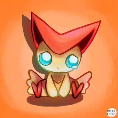 KOed. Victini be sad.Requested by some person, just a sketch..