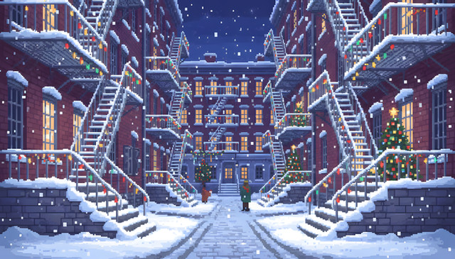 #snow #animatedgif #breakfast #buildings #pixelart