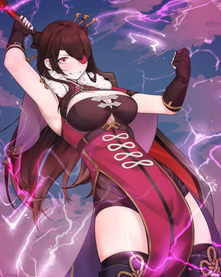#sword #armpits #chinesedress #digitaldrawing #eyepatch #fingerlessgloves #lightning #thighhighs #animemangagirl #longhairgirl #sexybeautiful #mascular #genshin_impact #genshinimpactfanart #beidou_genshin_impact
