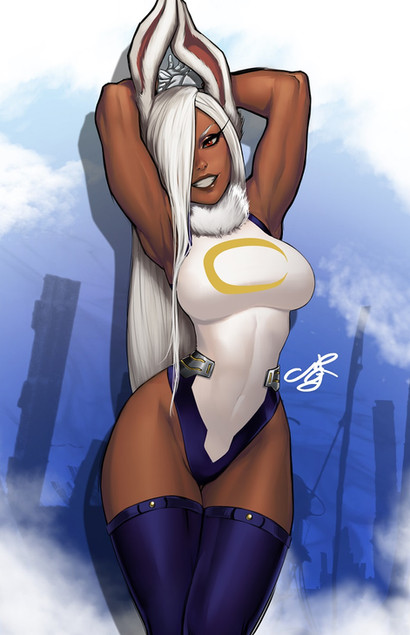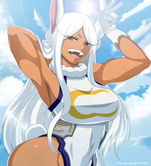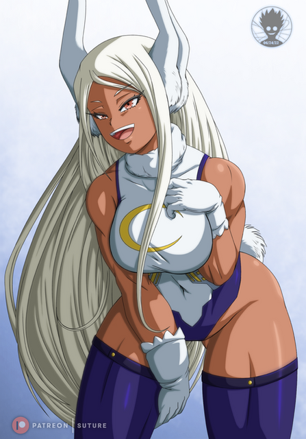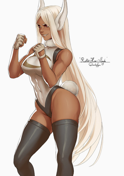 #hero #animalears #leotard #longhair #mirko #miruko #musclegirl #silverhair #thighhighs #darkskinnedgirl #bokunoheroacademia #myheroacademia #boku_no_hero_academia #usagiyama_rumi