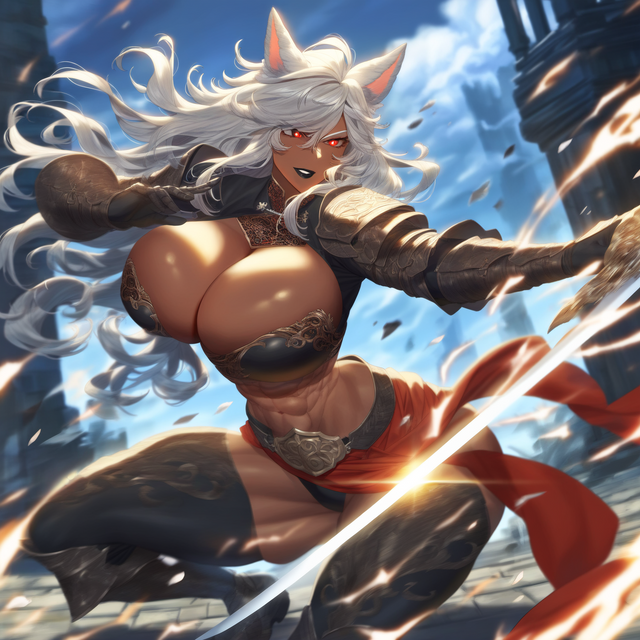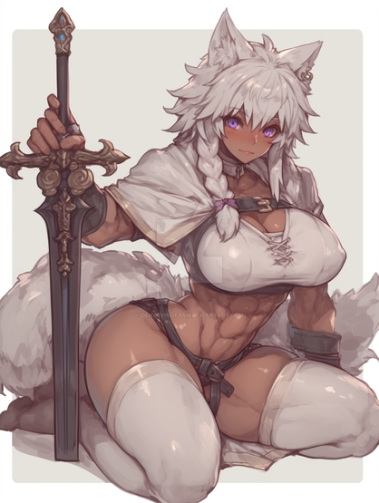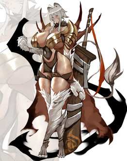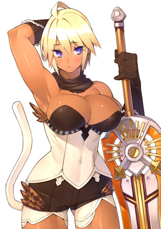 #bigbreasts #greatsword #ponytail #thighhighs #tannedskin #animal_ears #animal_tail