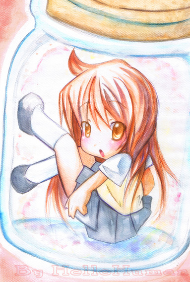 This was a meme kinda thing i found here [link] and since i had some free time on my hands AND my tablet was working perfectly, i decided to do it. (Did it quickly though e.e) And just for the record, i DID NOT make the bottle, just the girl inside. XD It was still pretty fun actually. (:Related content