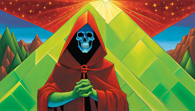 #ai #cape #death #odd #planet #planetary #ride #rider #skeleton #space #stars #strange #surreal #universe #wand #weird #aiart #aiartcommunity