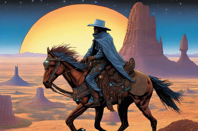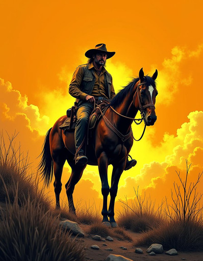 #ai #chuck #cowboy #horse #mountain #norris #ranger #ride #rider #riding #rugged #sunset #texas #tree #walker #aiart #aiartcommunity