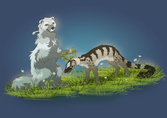 ((Please zoom in for better quality. Thank you!)) This one took a LONG while to do, and I'm SUPER proud of it. No references were used other than one paw reference for Porcelain, and the only help I recieved other than that was a bit of redlining from candlefox for Porcelain's back legs, which helped IMMENSELY. So here it is, one of the many birthday gifts I gave to DareWeBelieve for her 20th birthday a WHILE back. (All of the other gifts were purchased things and just an overload of affection.) I wasn't able to get the speedpaint to work until earlier this week, so I held off posting until now!