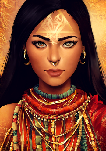 beautiful work! I love the gold lighting you've used in everything from the jewellery to the skin tone to the clothing and even the calligraphy!