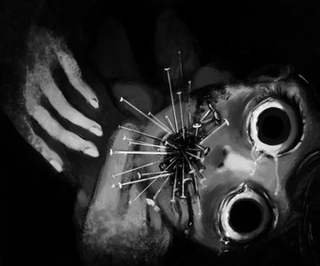 The hair feels so distraught and forgotten about in the pain. I feel a struggle to find stillness within.Β My tears well up burning as smoke stings my eyes and lungs.. coughing and dreading the feeling of the overwhelming nausea rising as my stomach heaves again. My lungs scream for air but there's nothing else to breathe. My heart pounding so hard as I compulsively inhale the dark black smoke deeply in,Β making it into a part of me, and my attention breaks from the painting before I puke on myself
