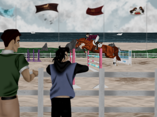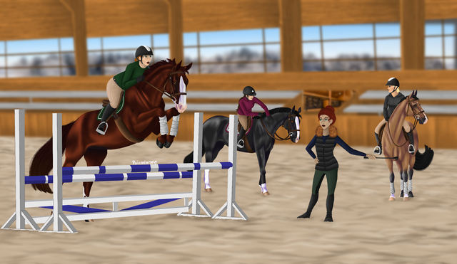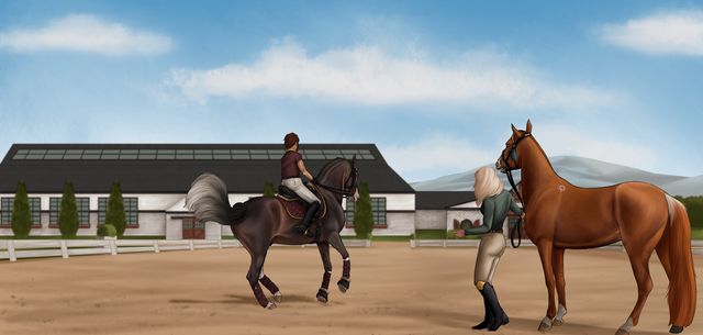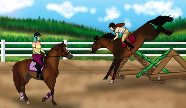With a sigh, she pushed the Hanoverian into a big trot down the rail, passing the new girl and making sure not to make any eye contact. She was determined to make this jump. With everything she had, she forced down the bubbling storm that was forming in her throat and stomach.