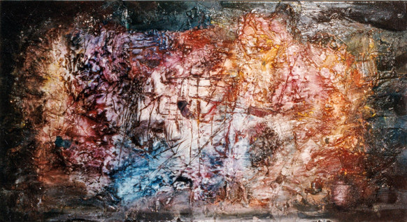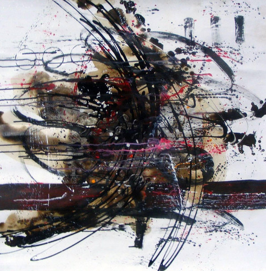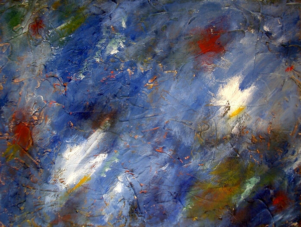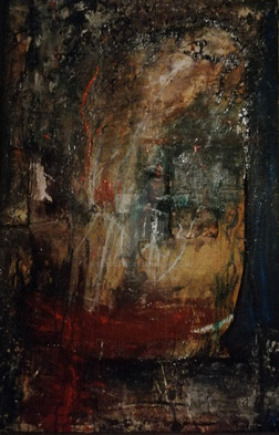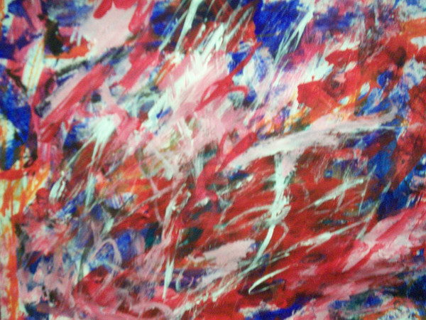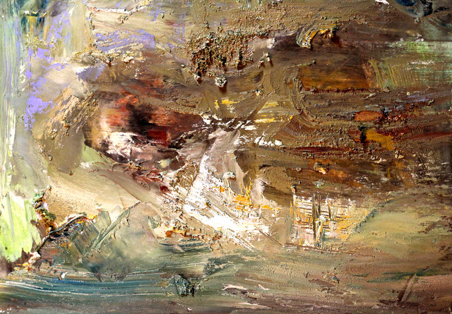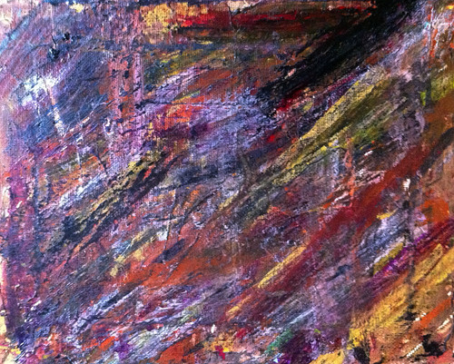 It's on canvas. The paint is acrylics, I used bits of paper towels to make it textured, and there are some paperclips scattered about