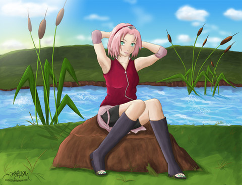 Well, this was created pretty quicky (5 hours from sketch to completion), but I like how it came outHonestly, I have not watched any Naruto in very, very long time... However, when I heard that the new episodes are finally starting next week, I felt inspired to draw Sakura, looking like she's gearing up for the next episodes, so to speak. I also drew and colored her in a pose as though she were on the cover of the manga, which I use to color for Inane so very long ago. Even the background was inspired from one of the covers I colored. :3