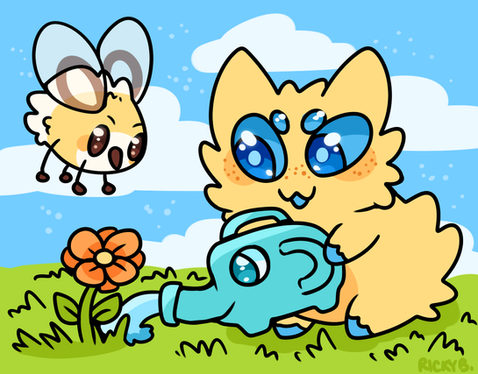 Magnolia working in her garden, making sure all the little seeds she planted would be sure to grow up big and strong.