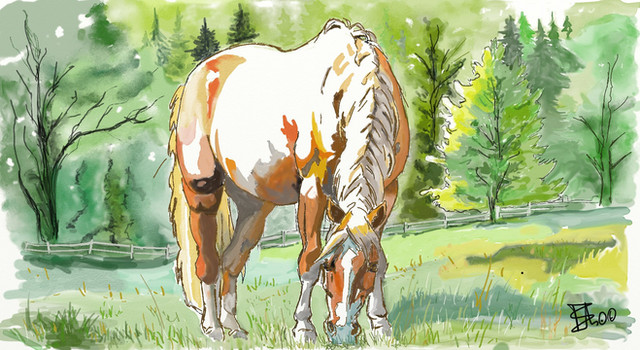Heyy there! Long time no see, but I keep on painting from time to time, and I juste felt like "why not submitting my last painting on DA?"This painting is really special to me ! It depicts my favourite memories from this summer holidays : seeing wild horses going freely on the mud and looking so beautiful.