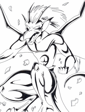 I love the clean lines on him and his expression! The smoke, the pole, the feet, the hair, I love it all! Awesome job!