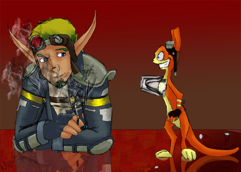 Daxter! He looks so adorable~ <3 Love the way you drew his bodyshape, especially. And that grin of his. XD Jak is also awesome.<3 I love his expression too. X)