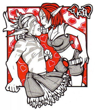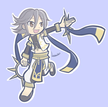 Right! so I saw [link] and thought; I need to steal that idea. I MEAN... try interpreting the concept. Yeah.I was also looking at the character art for KH2 and loved the simple flat colours, so I thought I'd give it a try. That, and I'm a little afraid of all the tiny details. ;-;