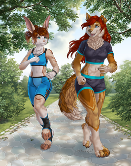 Both furry gals look quite sexy in their workout attire while jogging together in this picture you've done.