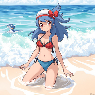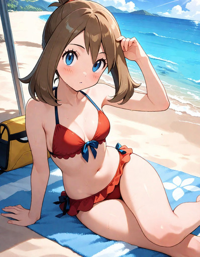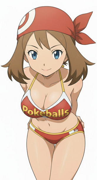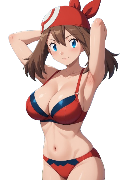 #anime #pokemon #pokemontrainer #ashketchum #nintendo #bikini #may #simplebackground #white #thick_thighs #may_pokemon #red_bikini