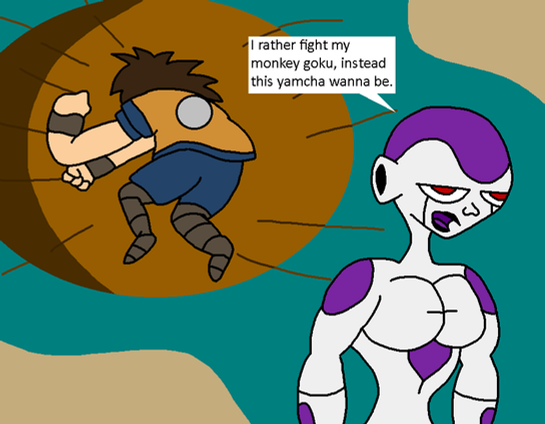 “What? Do you think the attack won’t be effective at this range? You couldn’t be more wrong, Super Saiyan. The legends spoke of a ruthless warrior, the sort of living weapon the destroyers of the Tuffles would call a hero, and yet you and your grandfather present yourselves as would-be avengers of the fallen. Let me show you how far that will get you.”