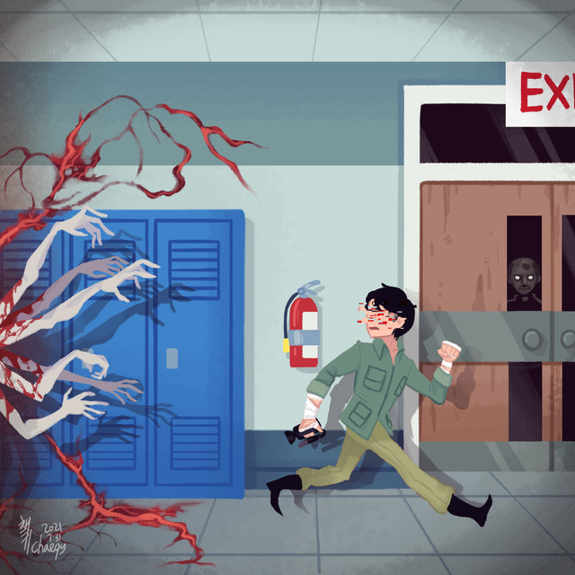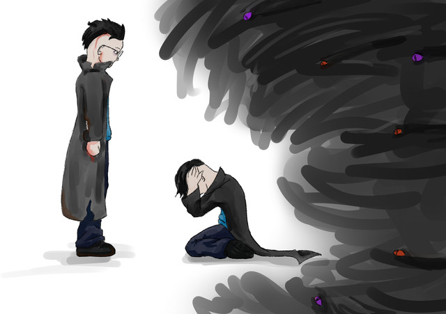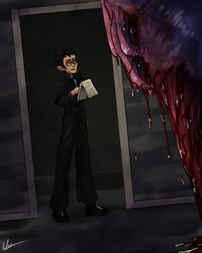 "Fuck you, FUCK YOU!" Dib yelled at the ceiling with his eyes still closed. His then shot open, tears or frustration falling free, at the sound of a loud thud like noise behind him. He turned around to the noise while he began to hyperventilate to see that the section of the hallway where he originally was dark. The place was already void of any lights, but it somehow grew darker.