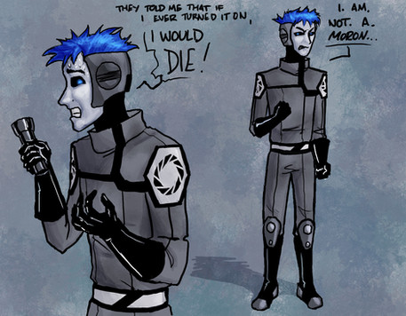 The face and hair were inspired by makani, along with the facial expressions... because I could not have done a better job with it. The suit design was a mix between Meketaten and my own. I made this for Meketaten because... well... we both really like GLaDOS.
