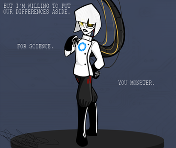 Gift forThis is GLaDOS, the computer AI in the Aperture Science Enrichment Center. When she was activated, she locked down the entire facility and took control over everything. She made all Aperture Science employees go through endless cycles of tests in the race for "portal" technology and development, against their rivals at Black Mesa. This is her in human form.