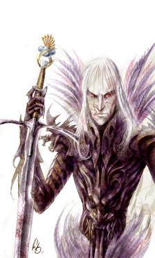 Beautifully rendered... the details are just blurry enough to grant it a sense of the unreal. Nice job, incorporating the "dragon sigil" into his clothing.