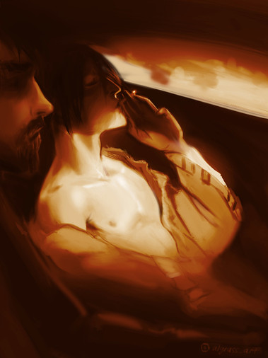 I like the expression of this pic, much. You gave it a wonderful after-sex-peace, exhaustion and lost-in-thoughts look. And the anatomy especially of the left guy (no I'm not into DA ) is beautiful.