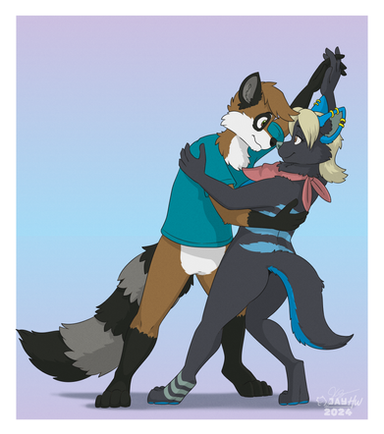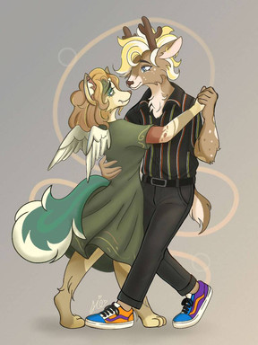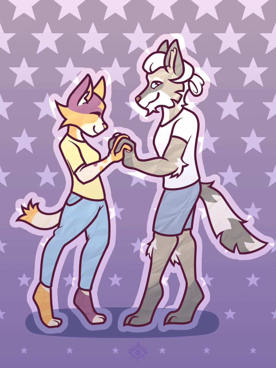 Adorable comm for Hyenahoss! He loves to dance no mater the local. His girl is a bit more shy about itTimelapse: twitter.com/PalehornTea/statusβ¦