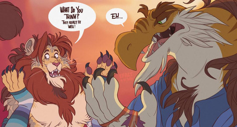 #anthro #avian #female #heroes #heron #lion #male #talk
