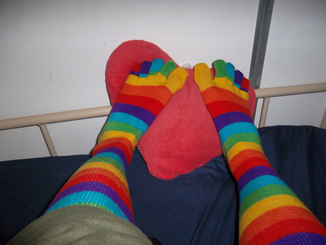 They are so beautiful! Both your feet and the toe socks, I like the rainbow.