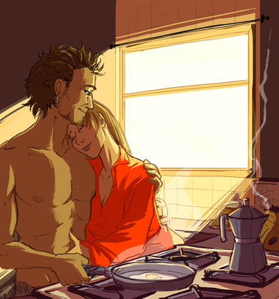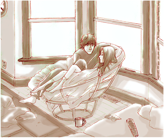 This is really lovely. I know what you mean about sketch vrs inked, I have the same problem. x3 This turned out really great though. Happy Anniversary you two!