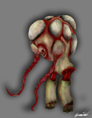 This one is inspired by all those villains from video games, that are suicidal enemies or explode upon death. Either way, they have a nasty habit of detonating near you.Those two holes dripping with glowing liquid work as safety-valve to prevent premature detonation.