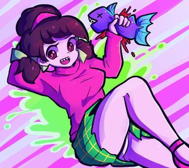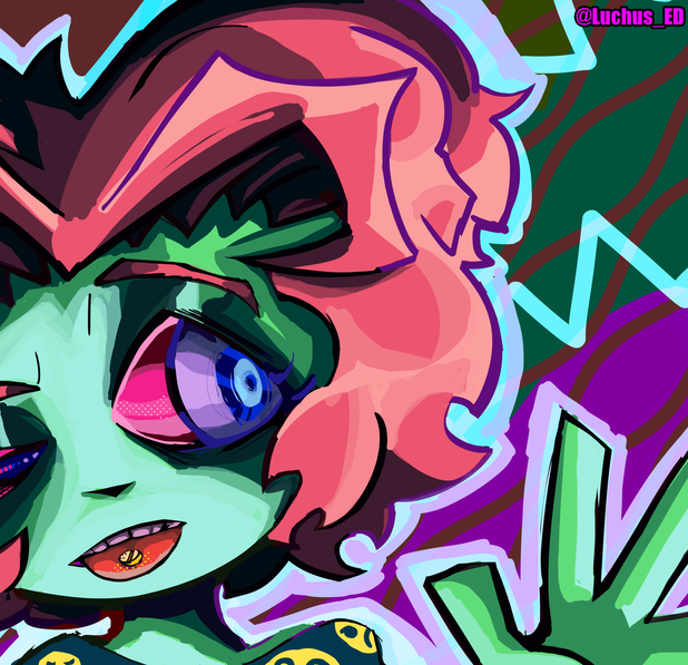 #aliengirl #blue #blueskin #colorful #colorfulart #digital #digitalartwork #digitaldrawing #digitalpainting #green #hydra #longhair #monstergirl #oc #orange #pink #pinkhair #purple #red #skirt #eyestrain #digitalillustration