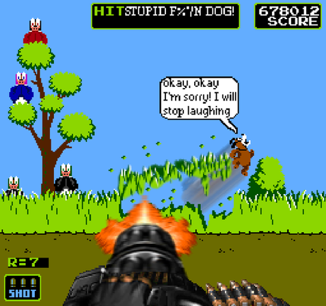 XD haha, that wins! dont let the hunter shoot you for snickering, lol