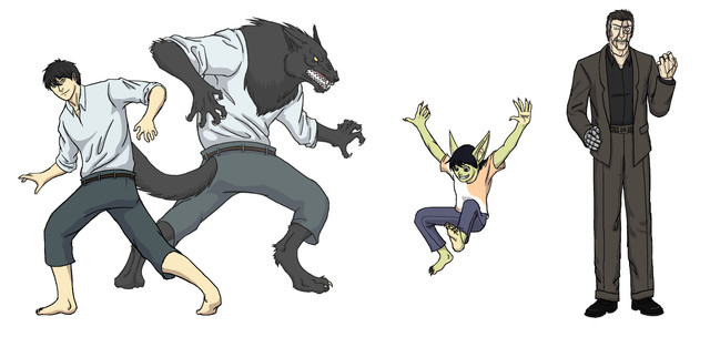 I wanted to draw something more recent that would illustrate the relative sizes between Sam's normal and werewolf form. I realize that drawing him in chibi form kind of completely defeats the purpose of that, but I don't care. It's fun to draw.There isn't much correlation between werewolf Sam and human Sam, except for the hair color and the scruffy bangs. I'm not sure if I should try to improve that or not.