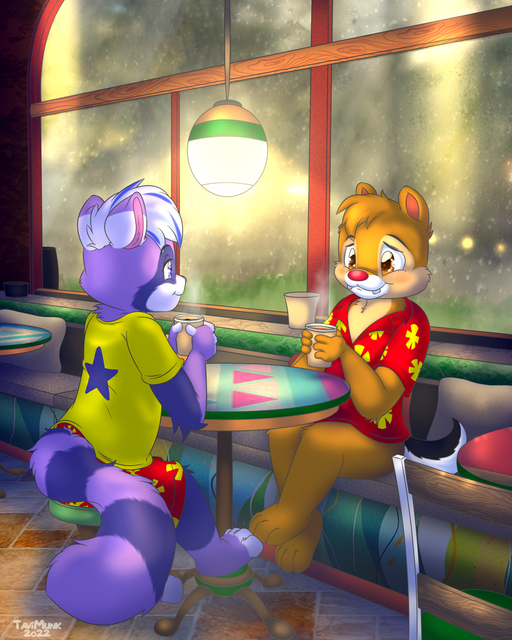 Sip, Para ello tienen sus tazas de cafés, para calentarse. Y el mapache viene de tierras frías, él está muy acostumbrado.
