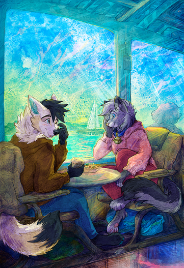 Commission for Michael Cartwright.I designed his little buddy, that cutie border collie dog. His character, Michael, the raccoon, is his character.